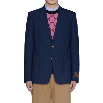 【包稅】GUCCI/古馳2021年新款男士深藍色羊毛外套654910ZACG74912