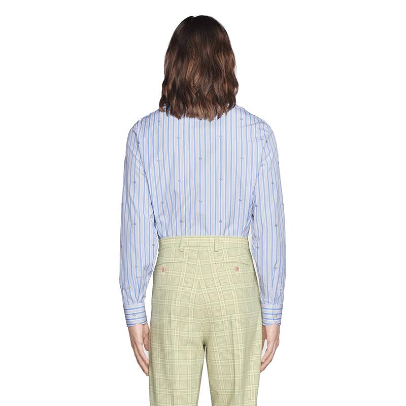 【包稅】GUCCI/古馳2021年新款男士淺藍色修身棉質襯衫659875ZAGV59018