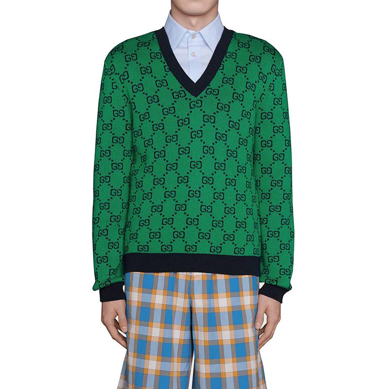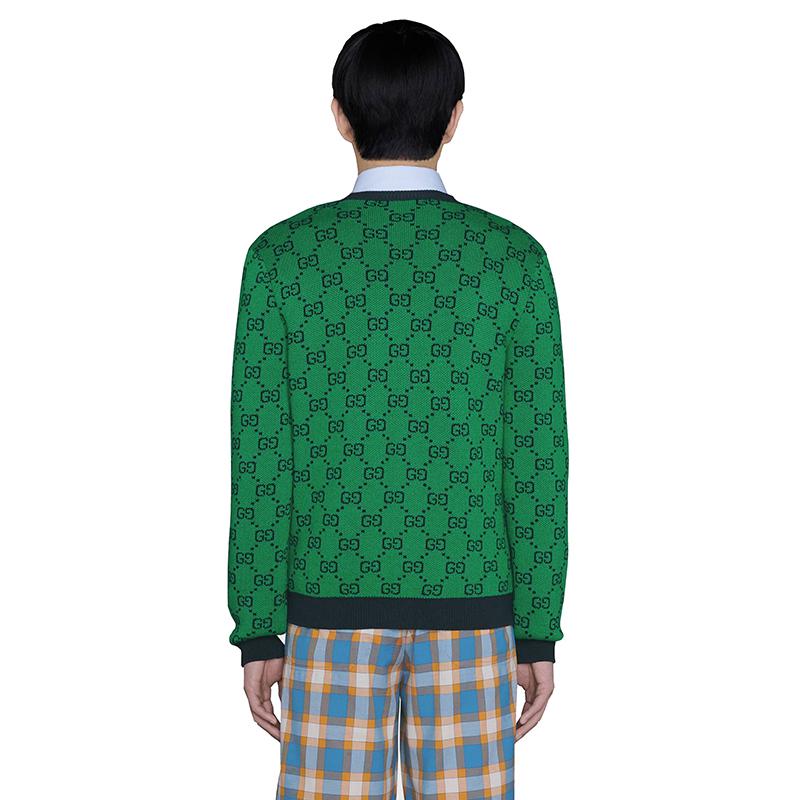 【包稅】GUCCI/古馳2021年新款男士綠色V領羊毛毛衣661155XKBXI3465
