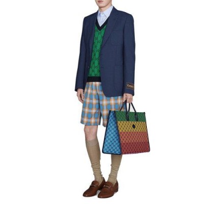 在GG Multicolor胶囊系列中,原始的会标图案是近一个世纪以来富有创造力的创作基础,上面装饰着蓝色,并装饰了一系列成衣,手袋以及鲜艳的配饰。在这里,这些颜色相结合,构成了带有V领的对比效果的棉羊毛针织毛衣。