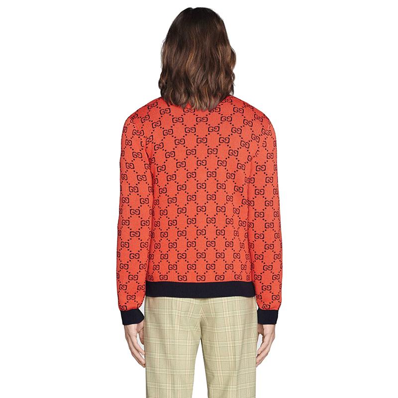 【包稅】GUCCI/古馳2021年新款男士橙色羊毛開衫661156XKBXI7548