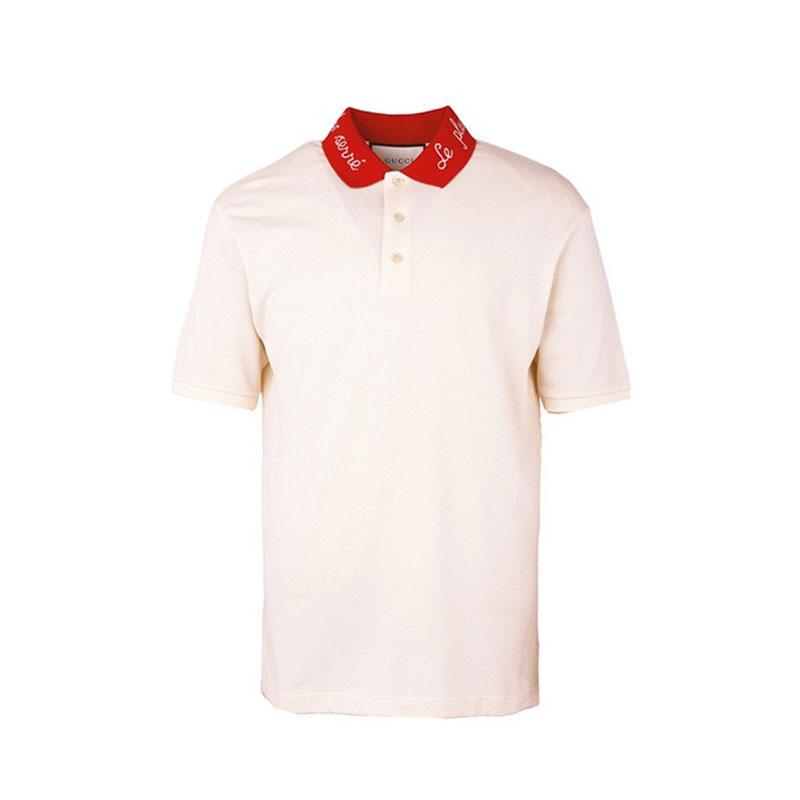 【包郵包稅】GUCCI/古馳古琦男裝時尚簡約男士米白色棉質短POLO 598958 XJB0W 9831 HKY012467