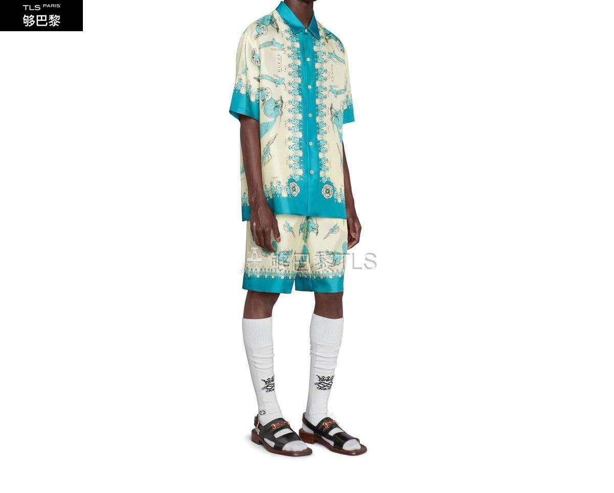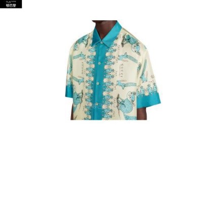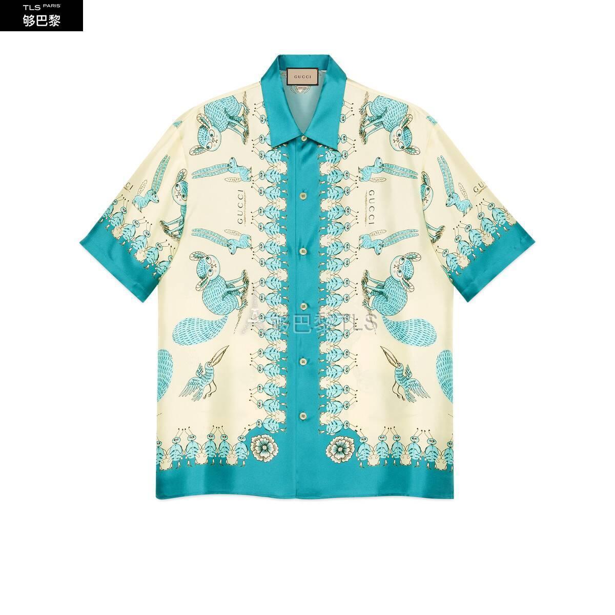 【包郵包稅】GUCCI古馳21年春夏男士Freya Hartas印花斜紋真絲襯衫654886 ZAGWY 4262