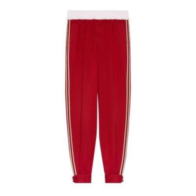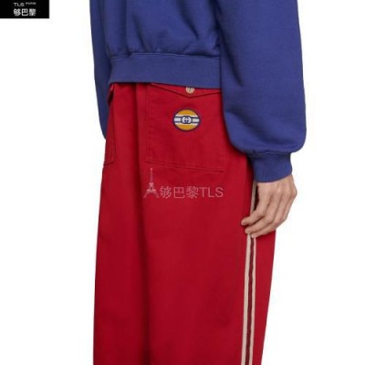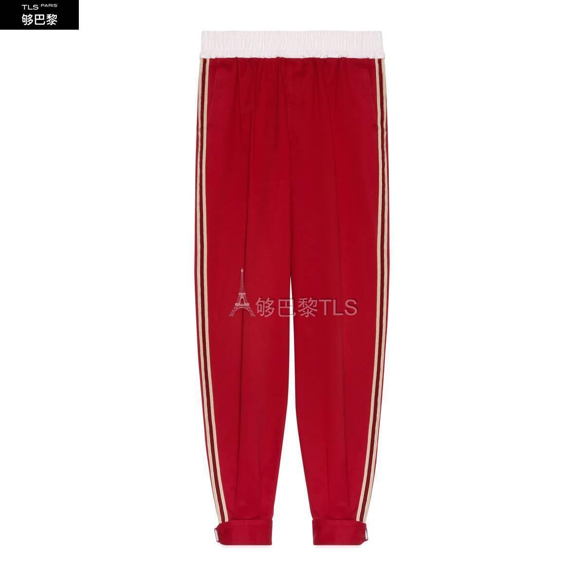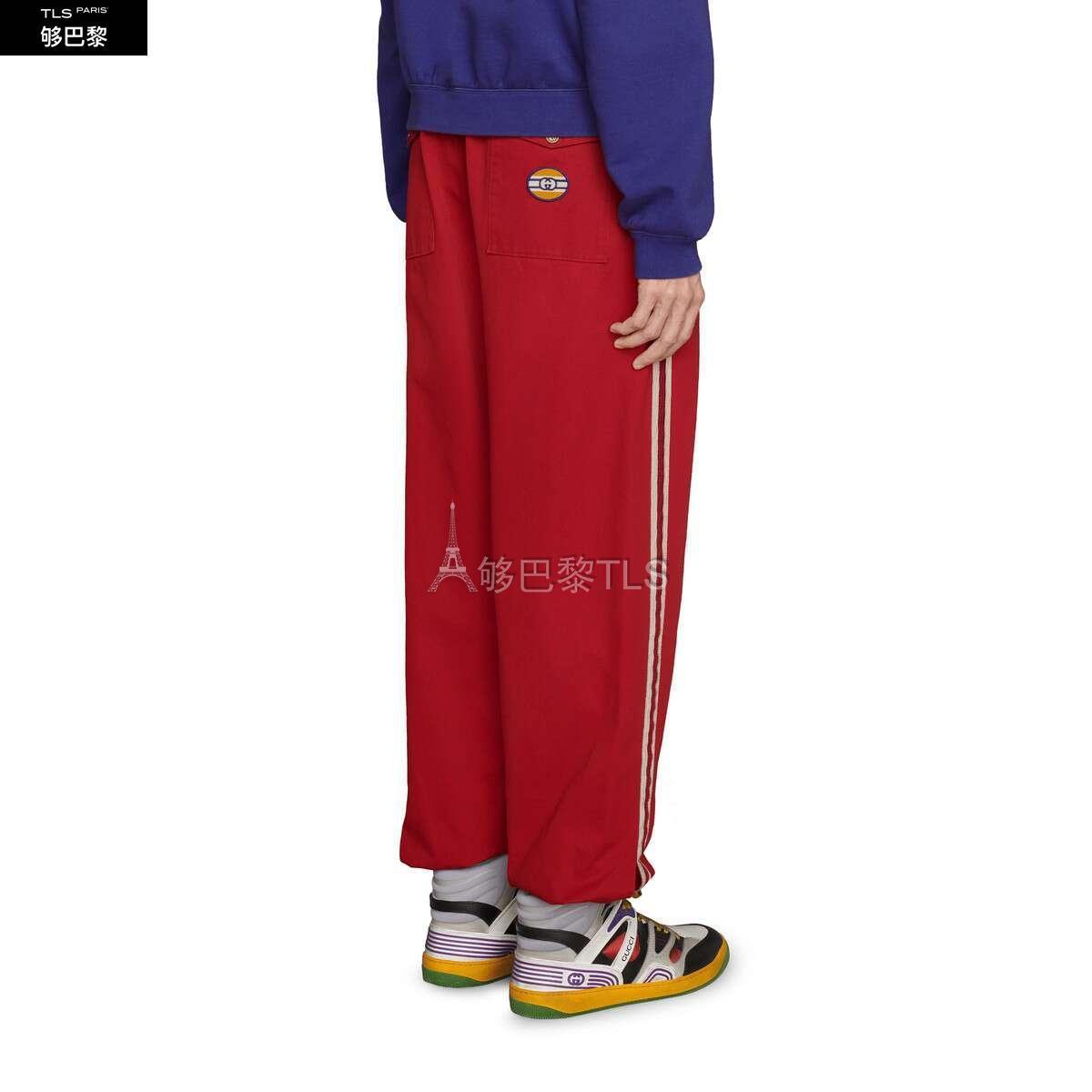 这款红色慢跑长裤采用*装风斜纹棉面料制作而成,搭配脚踝处搭扣和复古Gucci标识贴饰细节。水洗运动装风格为无边序曲系列带来更多搭配选择。
