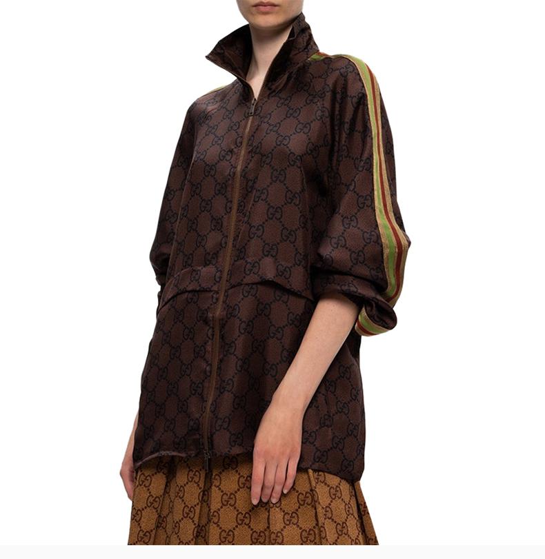 首頁 > 腕表 > 古馳 > GUCCI古馳男士服裝21春夏棕色老花格紋立領拉鍊絲質外套夾克男士夾克
