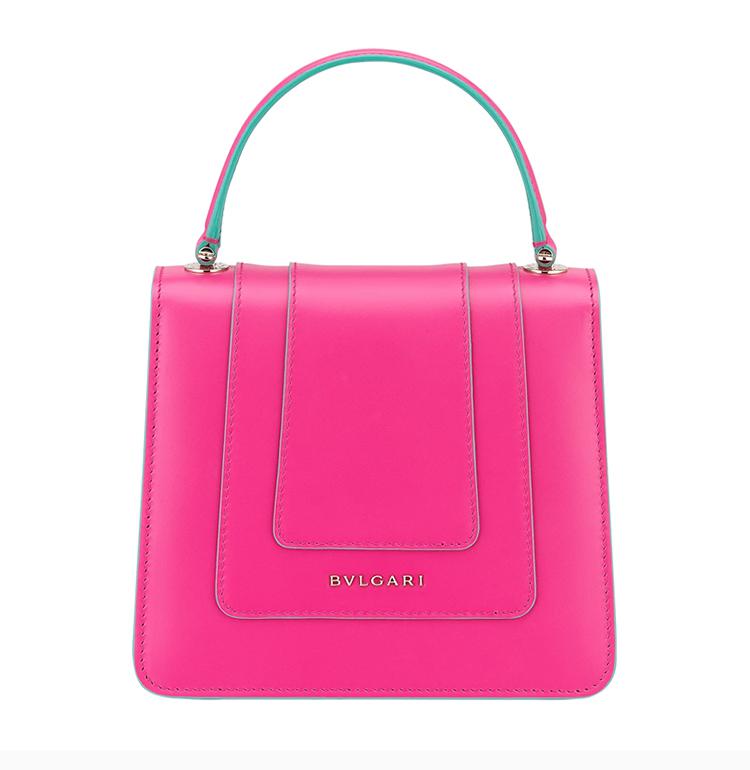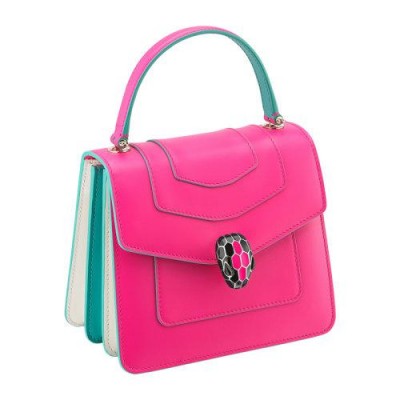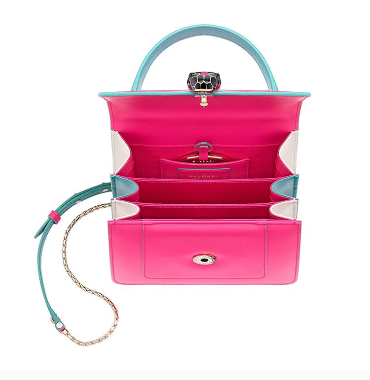 BVLGARI/寶格麗女士粉色小牛皮珐琅蛇頭包扣磁扣翻蓋開合單肩包斜挎包手提包鏈條包女包289469