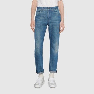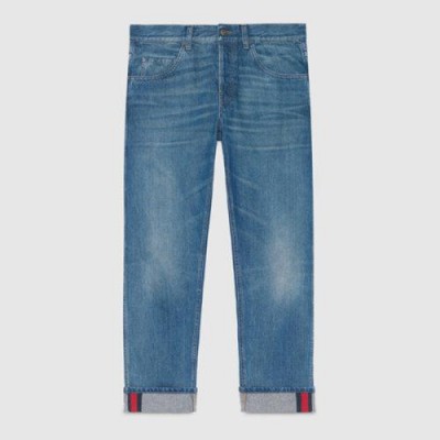 GUCCI/古驰  饰条纹织带锥形牛仔裤【现货】