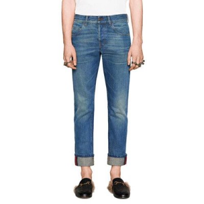 首頁 > 腕表 > 古馳 > GUCCI/古馳飾條紋織帶錐形牛仔褲【現貨】