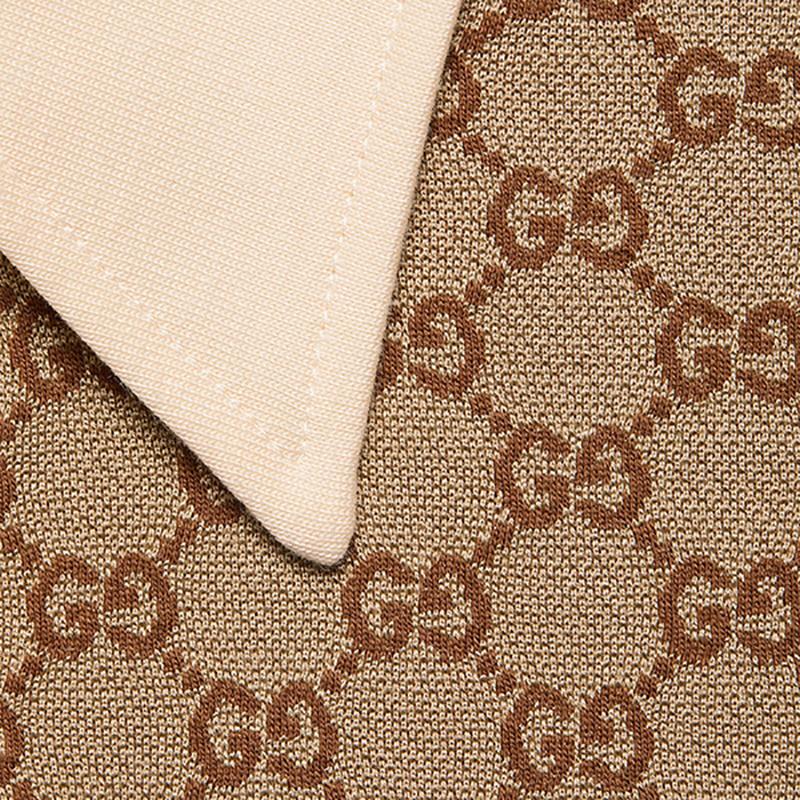 这款polo衫采用厚实的象牙色棉质底布设计,并以米色和乌木色真丝棉质提花装饰,轮廓的前部饰有图案。众议院的象征性代名词是图案,材料和轮廓的千差万别,例如GG图案,以创造性的方式重现了经典的大学风格。