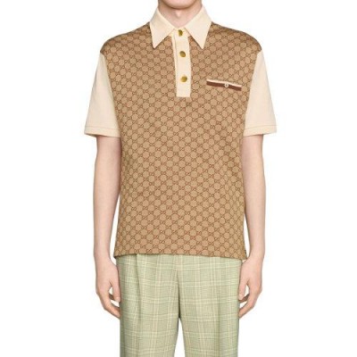 【包税】GUCCI/古驰 21年春夏新款 男士象牙色GG图案棉质真丝平纹针织提花短袖polo衫655435XJDGE2270
