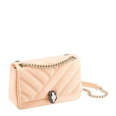 【包稅】BVLGARI/寶格麗SERPENTI CABOCHON系列女士蜜桃色絎縫小牛皮淺金鍍金黃銅黑白珐琅經典蛇首扣單肩包斜挎包鏈條包女包290612
