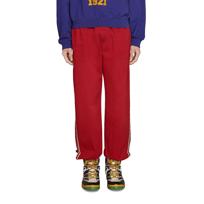 【包稅】GUCCI/古馳21年早秋新款男士紅色棉質運動褲653392ZAGP06429