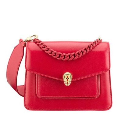 【包稅】預售2周貨BVLGARI/寶格麗2021春夏新款SERPENTI FOREVER系列女士小號紅色納帕皮革金色黃銅紅玉髓瑪瑙扣單肩斜挎包290763