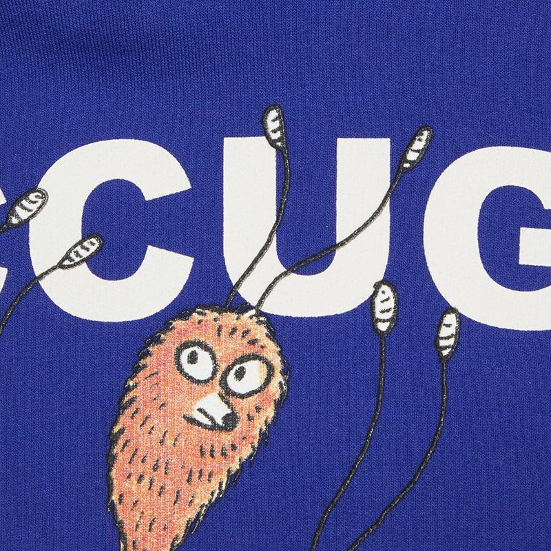 【包稅】GUCCI/古馳21年早秋新款Freya Hartas系列男士藍色棉質動物印花衛衣646953XJDJT4120