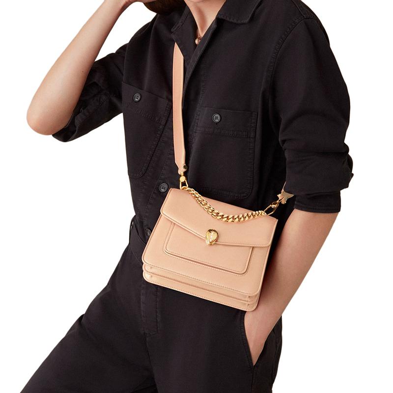 【包税】BVLGARI/宝格丽 2021春夏新款SERPENTI FOREVER系列 女士小号桃红色纳帕皮革金色黄铜珍珠贝母扣单肩斜挎包290765