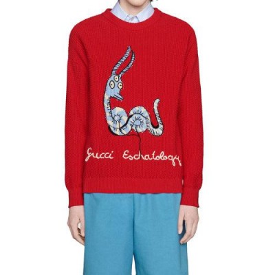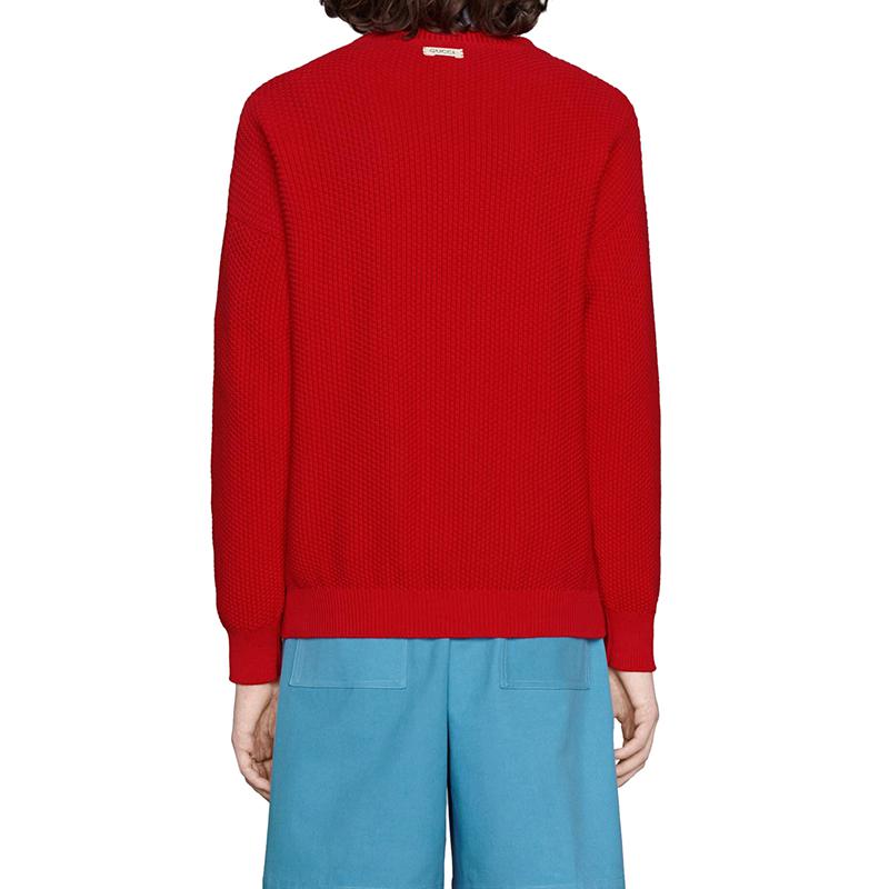 【包稅】預訂款1個月GUCCI/古馳21年早秋新款Freya Hartas系列男士鮮紅色動物印花棉質毛衣654426XKBT76229