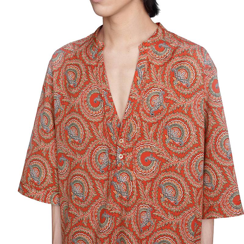 【包税】GUCCI/古驰 21年春夏新款 男士橙色黄色和蓝色棉质佩斯利迷印花V领上衣654888ZAGXJ7220
