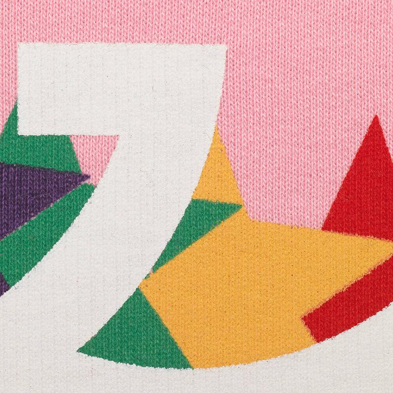 • GG发光星星印花的轻质粉红色毡棉质汗布