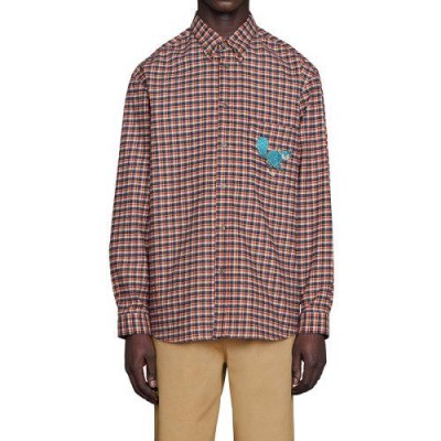 首頁 > 腕表 > 古馳 > ‎【包稅】GUCCI/古馳21年早秋新款Freya Hartas系列男士紅色和藍色小格紋動物刺繡棉質長袖襯衫660440ZAHB06499