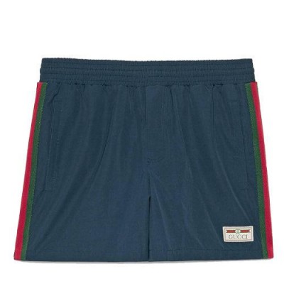 【包稅】GUCCI/古馳21年春夏新款男士藍色GG提花防水尼龍側條紋短褲599585XHAB74728