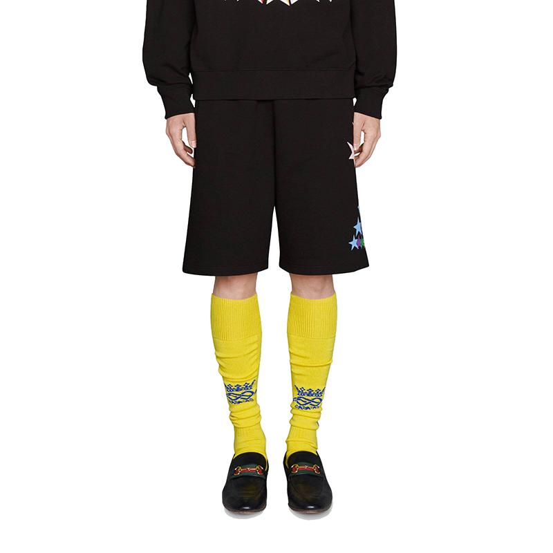 【包稅】預訂款1-2周GUCCI/古馳21年早秋新款Opening系列男士黑色發光的GG星星印花棉質短褲663249XJDNK1082