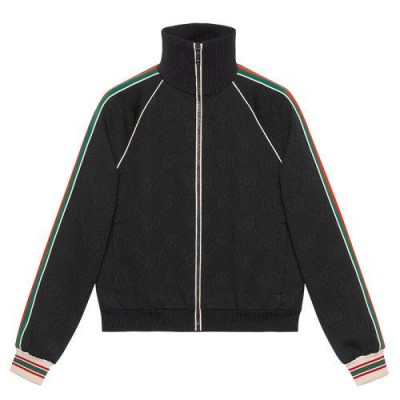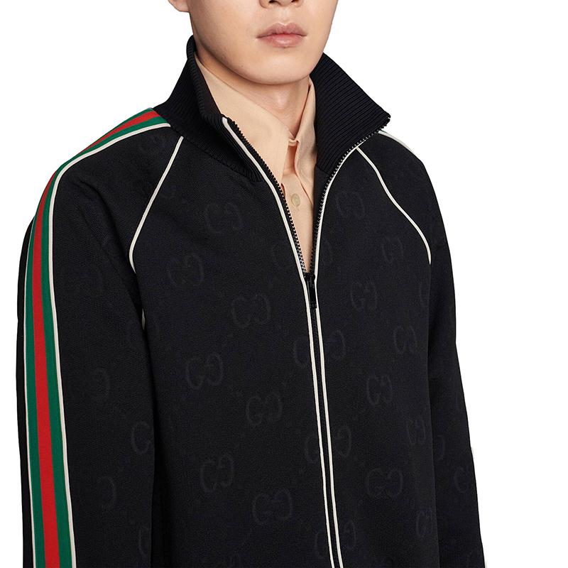 【包稅】GUCCI/古馳21年早秋新款男士黑色GG提花針織拉鍊外套662270XJDE91043