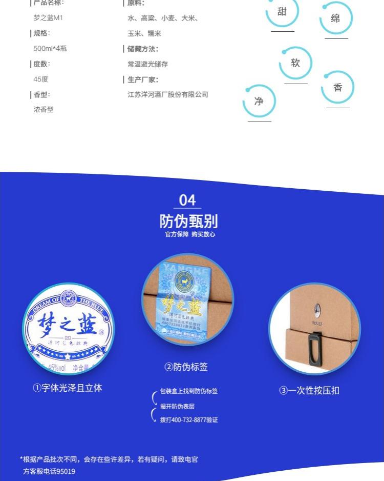 洋河蓝色经典 梦之蓝M1-45度500ml*4瓶 整箱装浓香型白酒洋河蓝色经典 梦之蓝M1-45度500ml*4瓶 整箱装浓香型白酒