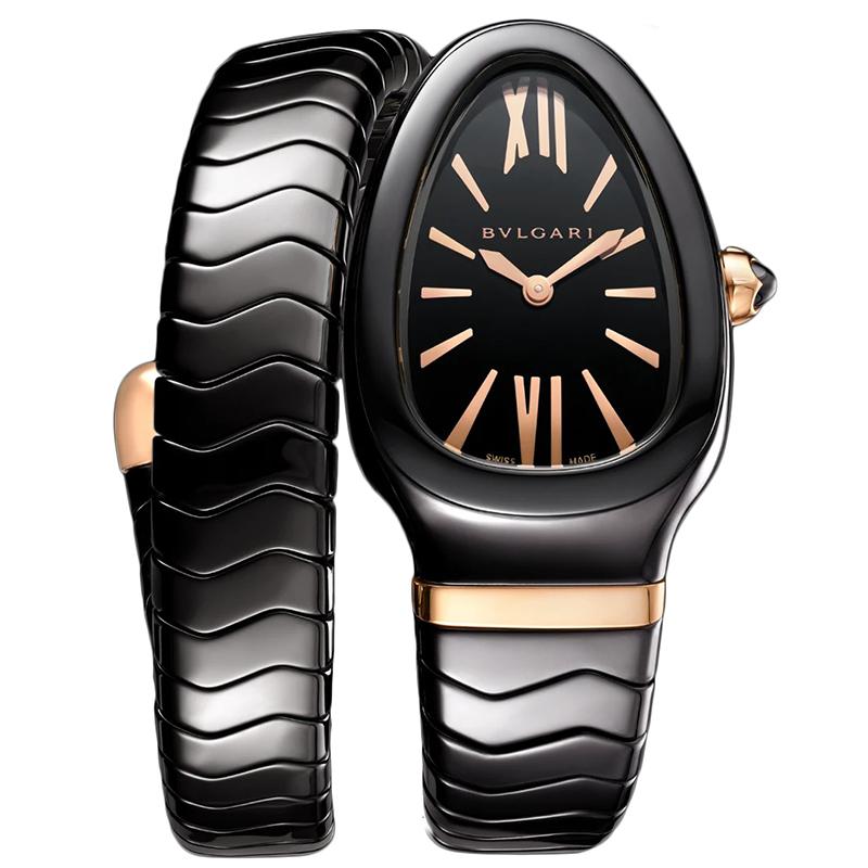 【包稅】預定2-3周BVLGARI/寶格麗黑色陶瓷錶殼和螺旋錶帶鑲有18K金玫瑰金元素黑色烤漆錶盤SERPENTI SPIGA石英手錶35毫米102734