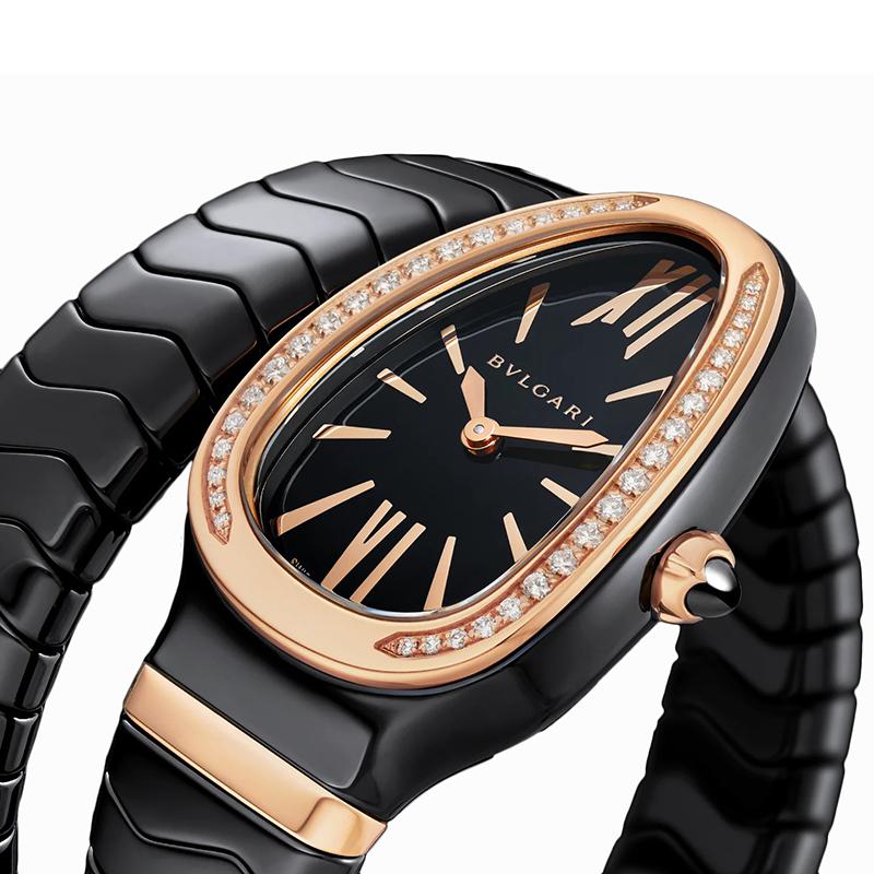 首頁 > 箱包配飾 > 寶格麗 > 【包稅】預定2-3周BVLGARI/寶格麗黑色陶瓷錶殼18K金玫瑰金表圈鑲有明亮式切割鑽石和黑色陶瓷螺旋錶鏈黑色烤漆錶盤SERPENTI SPIGA石英手錶35毫米102532