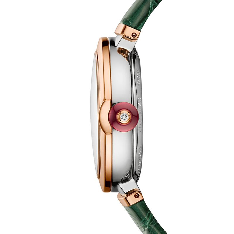 首頁 > 箱包配飾 > 寶格麗 > 【包稅】預定2-3周BVLGARI/寶格麗18K金玫瑰金和精鋼錶殼白色珍珠母貝錶盤鑲有鑲有鑽石的時標日期窗和綠色鱷魚皮錶帶LVCEA自動機械手錶33毫米102640