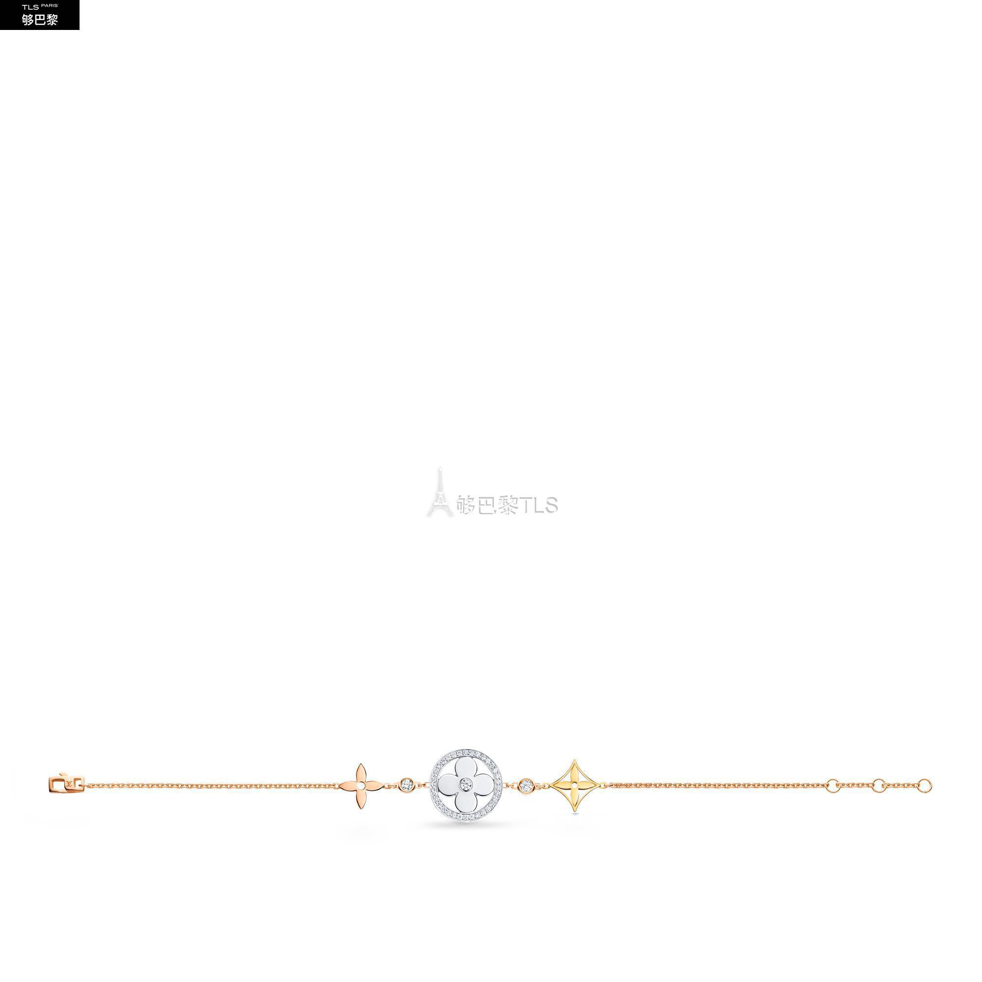 【包郵包稅】LV路易威登21年春夏女士手鐲Idylle Blossom XL手鐲,三色金鑲鑽Q95443預定商品1-3周發貨