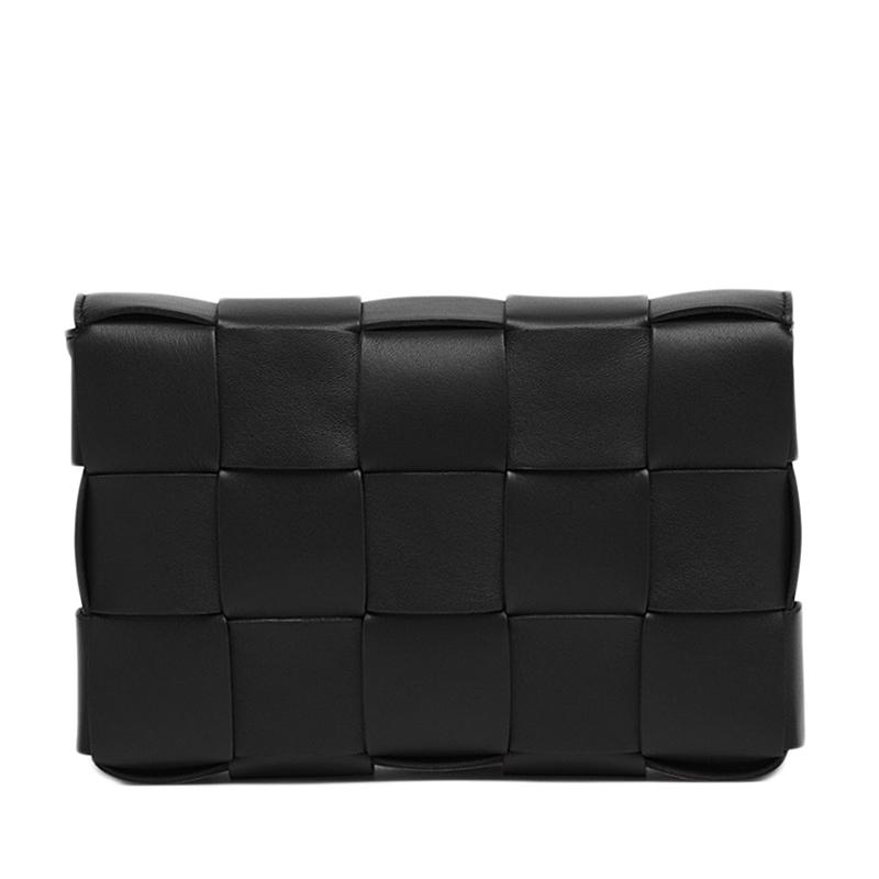 【包稅】Bottega Veneta/葆蝶家經典款CASSETTE系列黑色小羊皮雙面正交編織單肩豆腐包578004VMAY11229