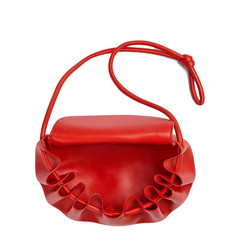 【包稅】Bottega Veneta/葆蝶家21新款BEAK系列女士中號紅色小羊皮三角形翻蓋單肩斜挎手拿包658523VCP306402