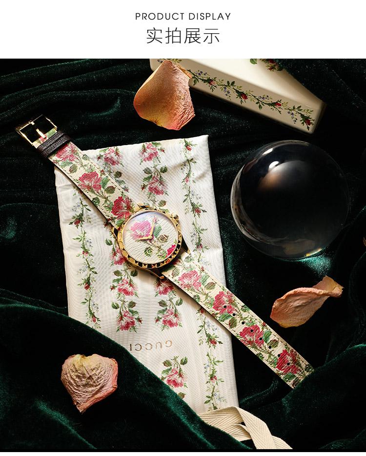 GUCCI/古驰 G-Timeless系列明星同款 女士鲜花表盘皮带石英腕表 YA1264084