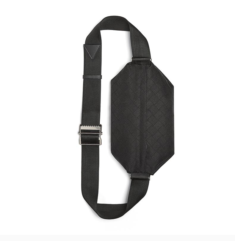 【包税】Bottega Veneta/葆蝶家 男士黑色尼龙配皮时尚简约拉链开合单肩包斜挎包胸包腰包男包 650031-V0EP2-1229