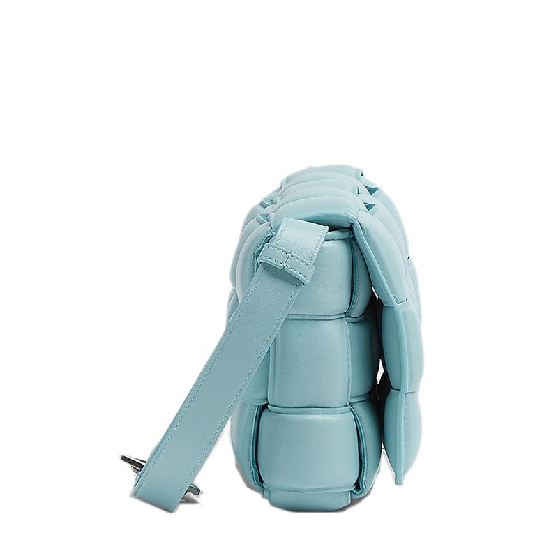 【包稅】Bottega Veneta/葆蝶家21春夏新款CASSETTE PADDED系列女士薄荷綠色小羊皮雙面編織單肩斜挎豆腐包591970VCQR11619