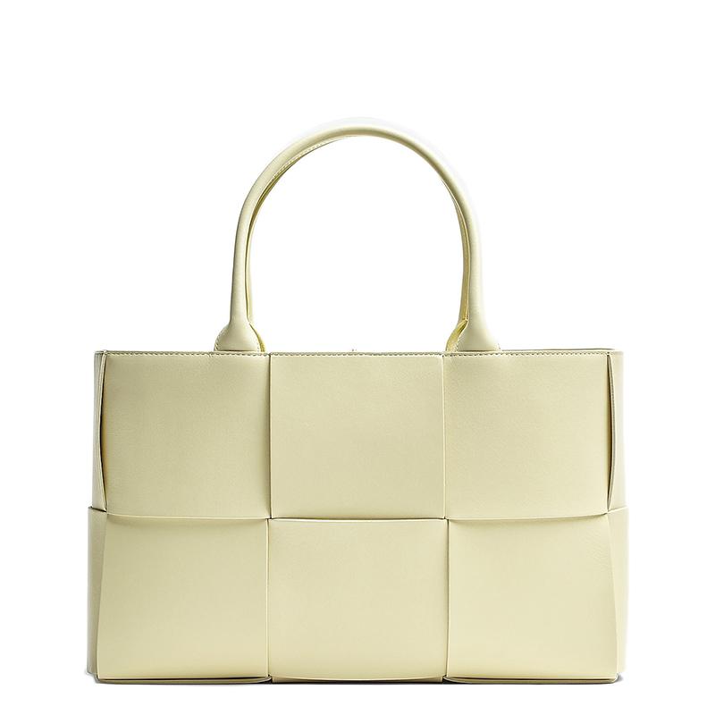 【包稅】Bottega Veneta/葆蝶家21春夏新款ARCO系列女士中號霜淇淋色小羊皮格子編織手提托特包609175VCQC27450