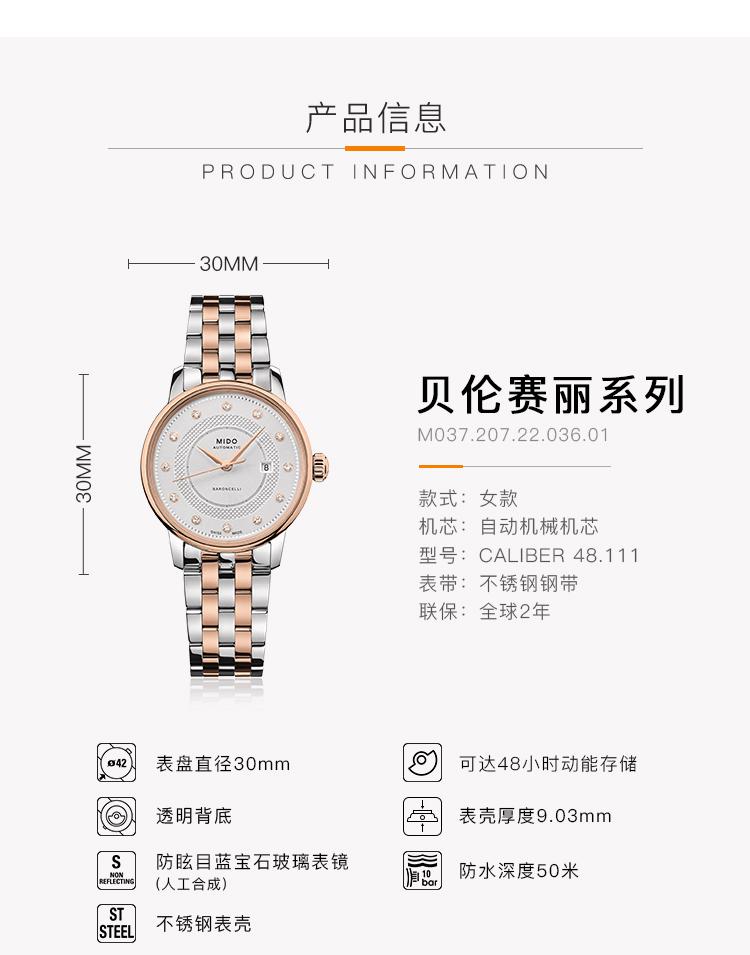 mido/美度贝伦赛丽系列女士腕表M037.207.22.036.01