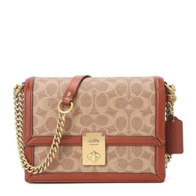 COACH/蔻驰  HUTTON口盖包 老花拼皮金扣3492 涂层帆布\牛皮革