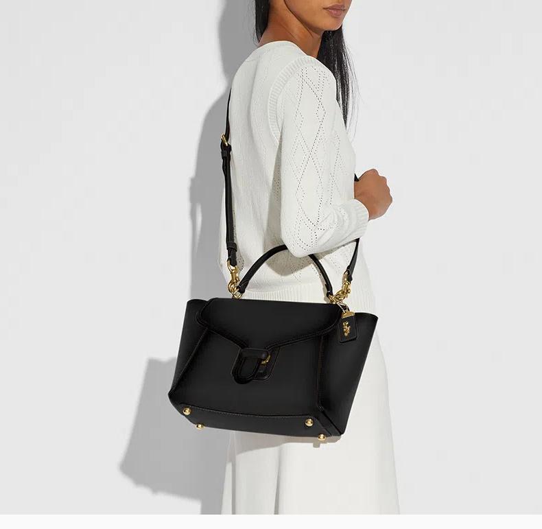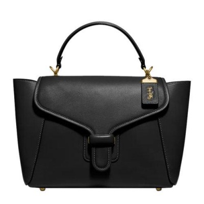 【包稅】COACH/蔻馳專櫃同款女士黑色皮革馬車徽標吊牌翻蓋搭扣可拆卸肩帶斜挎包單肩包手提包女包88348B4BK