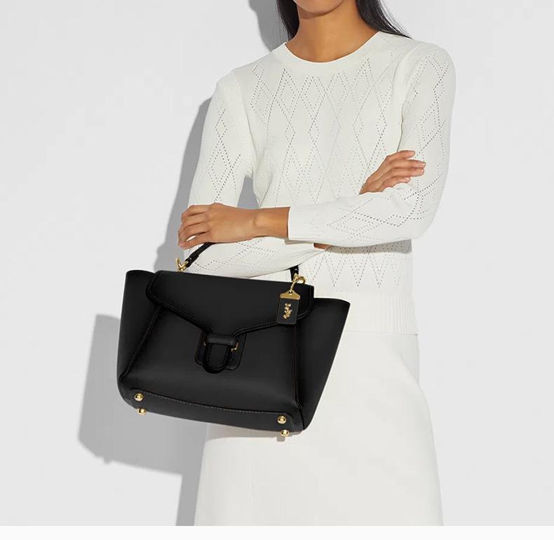 COACH/蔻馳女士黑色馬車徽標吊牌翻蓋搭扣可拆卸肩帶斜挎包單肩包手提包女包88348B4BK