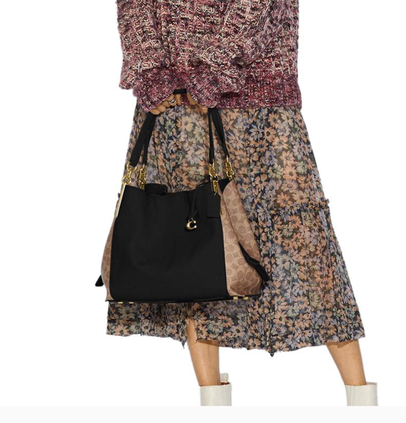 首頁 > 箱包配飾 > 蔻馳 > 【包稅】COACH/蔻馳Dalton系列女士黑褐色粒面皮革手提包單肩包購物包女包76078B4OOH