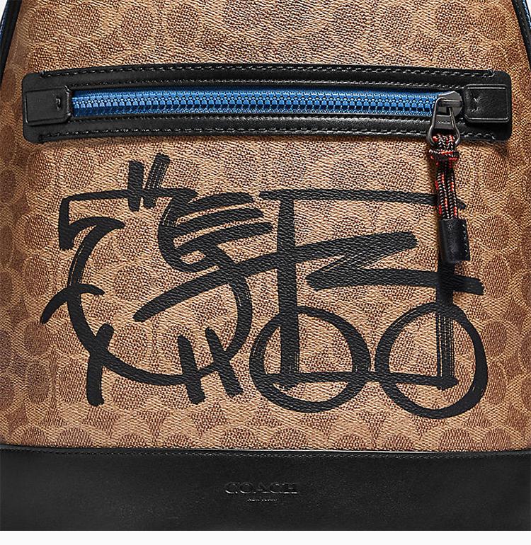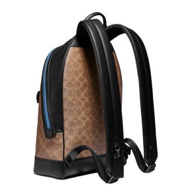【國內現貨】COACH/蔻馳(專櫃)男士塗層帆布拼色老花印花圖案雙肩包背包旅行包