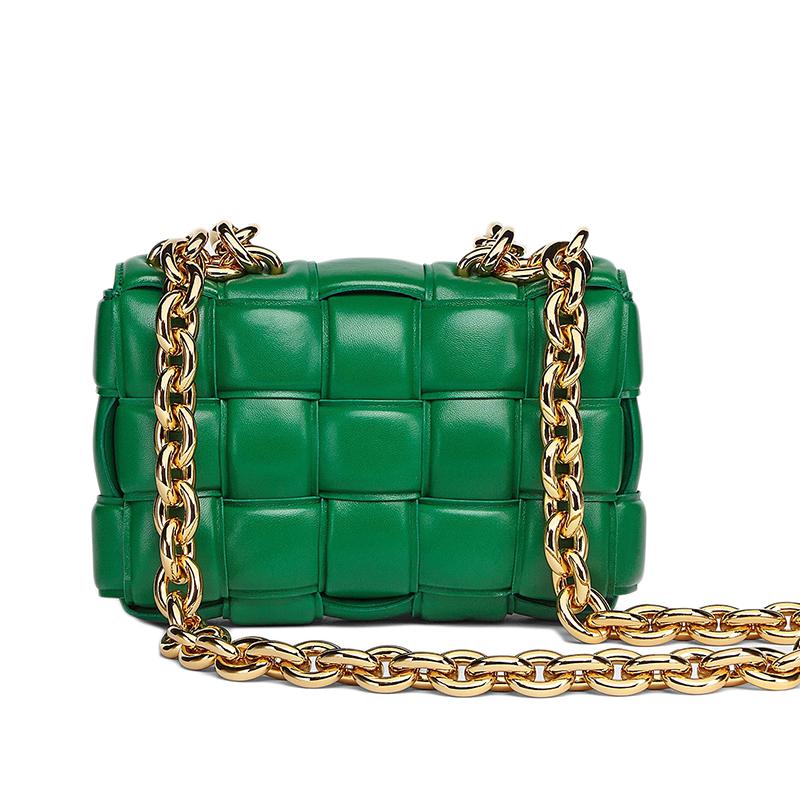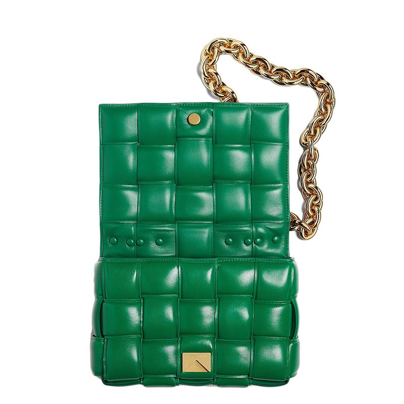 【包稅】Bottega Veneta/葆蝶家經典款CHAIN CASSETTE系列女士賽車綠色小羊皮編織鏈條單肩斜挎豆腐包631421VBWZ03104
