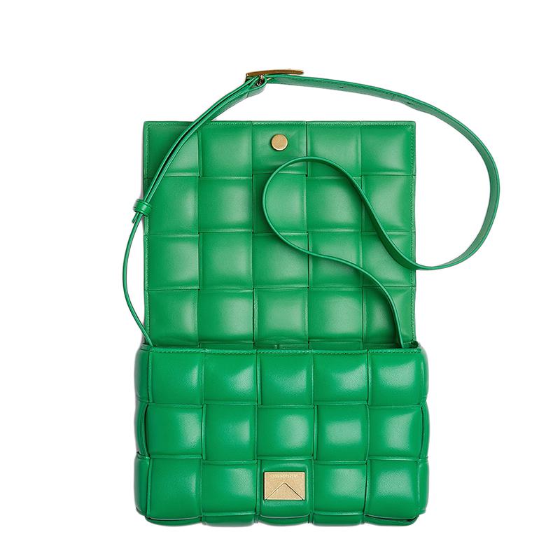 【包稅】Bottega Veneta/葆蝶家21春夏新款CASSETTE PADDED系列草綠色小羊皮雙面正交編織單肩豆腐包591970VCQR13714