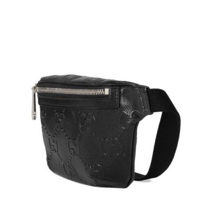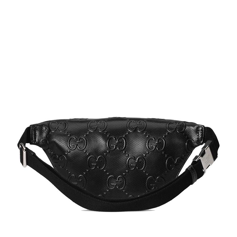 【包税】GUCCI/古驰 21新款GG embossé系列 男女同款黑色双G压纹皮革斜挎包腰包6585821W3CN1000