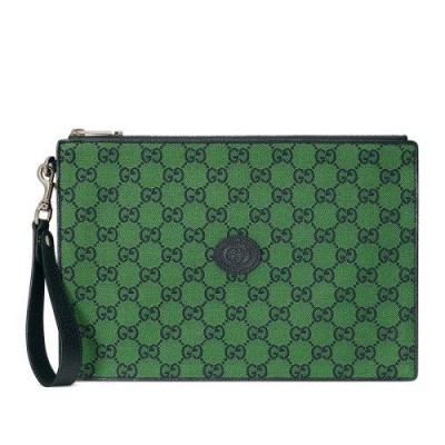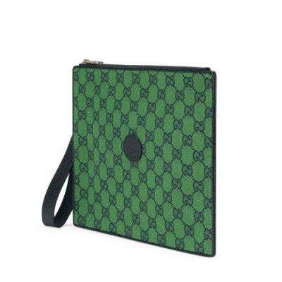 【包稅】GUCCI/古馳2021春夏新款Pochette GG Multicolor系列男女同款綠色和藍色GG帆布GG鑽石圖案手拿包‎6575812UZAN3368