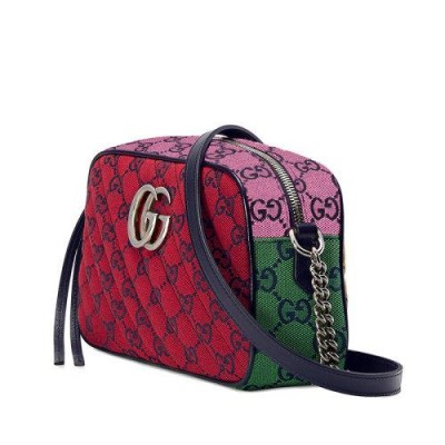【包税】GUCCI/古驰 2021春夏新款 GG Marmont‎系列 小号女士多色GG帆布拉链银色饰面双G徽标斜挎单肩手提包4476322UZIN6061
