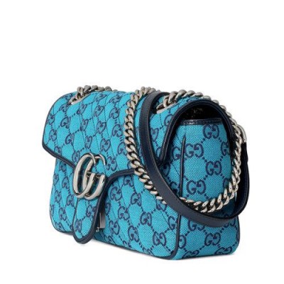【包稅】GUCCI/古馳2021春夏新款GG Marmont‎系列小號女士淺藍色和藍色GG帆布銀色飾面雙G扣斜挎單肩手提包4434972UZCN4164
