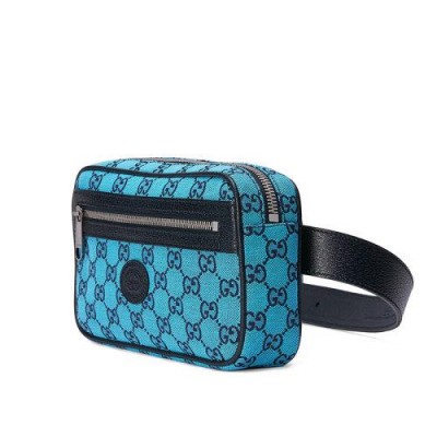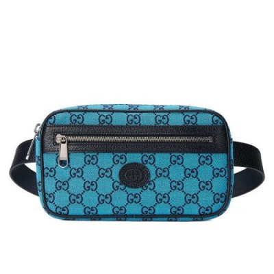 【包税】GUCCI/古驰 2021春夏新款 GG Multicolor系列 男女同款浅蓝色和蓝色GG帆布GG钻石图案腰包‎6586572UZAN4487
